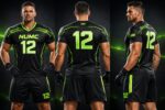 Custom Black & Red Football Kit – Personalized Soccer Jersey & Shorts Set | Team Uniform with Name & Numbe